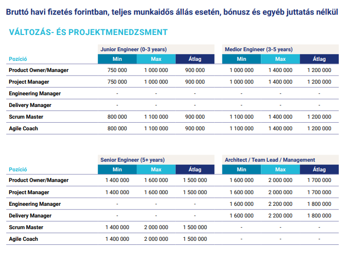 A másik számomra szembetűnő érdekesség, ha egy keveset tovább görgetünk, akkor elérjük a szoftverfejlesztéshez szükséges egyéb operációt tevékenységet folytató munkaköröket, és azt látjuk, hogy itt sincsenek akkora eget verő különbségek ezek között. Ha pedig azt veszük, hogy miféle belépőszintet kell megütni ahhoz, hogy valaki ezek közül bekerüljön a vérkeringésbe, akkor én joggal érzem azt, hogy a fejlesztők és tesztelők alul vannak fizetve. Persze nem lehet összehasonlítani a biciklit a motorral, de aki már volt nem egyszer részese fejlesztői munkának, biztosan jól tudja, hogy egy sprintben kinek is van a legtöbb hozzáadott értéke attól függetlenül, hogy az egész scrum csapat értékes munkát végez.
